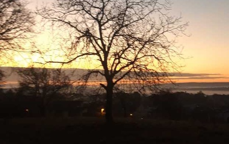 Ganz unerwartet taucht er vor meinen Augen auf: ein Baum im Morgenrot.